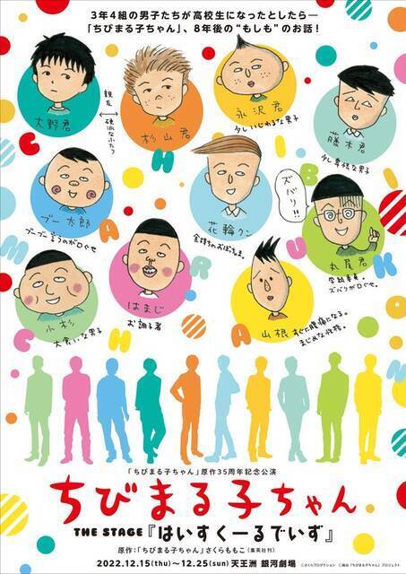 3 年 4 組の男子たちが高校生になったとしたらー 「ちびまる子ちゃん」、8 年後の“もしも”のお話!日本アニメーション株式会社(本社:東京都中央区、代表取締役社長:石川和子)がアニメーション制作・ライセンス管理を行う「ちびまる子ちゃん」の原作35周年を記念した舞台公演 ちびまる子ちゃん THE STAGE 『はいすくーるでいず』 のティザービジュアルおよび公演情報を本日公開いたしました。