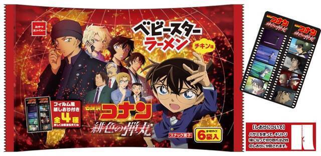 劇場版『名探偵コナン 緋色の弾丸』とベビースターがコラボしています! 全8種類の個包装パッケージに加えて、映画のシーンをデザインした“フィルム風紙しおり”付きで楽しさ満載のコラボ商品となっています!