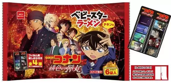 劇場版『名探偵コナン緋色の弾丸』とベビースターがコラボしています!全8種類の個包装パッケージに加えて、映画のシーンをデザインした“フィルム風紙しおり”付きで楽しさ満載のコラボ商品となっています!株式会...