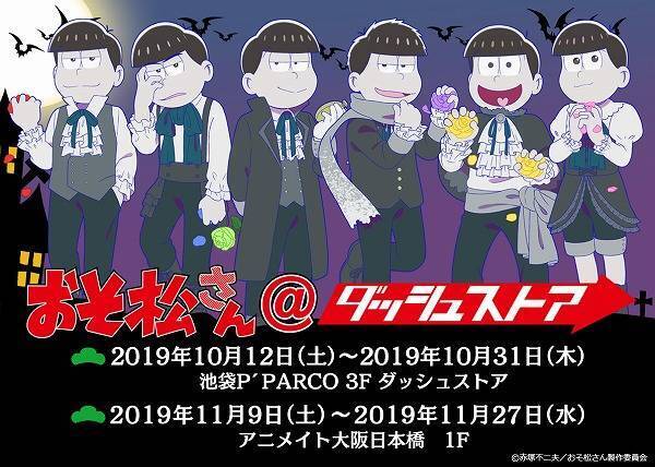 期間限定で話題作のグッズを販売するダッシュストアに『おそ松さん』がオープンします!漆黒の衣装に身を包んだ、6つ子&F6の描き下ろしグッズがゲットできます♪