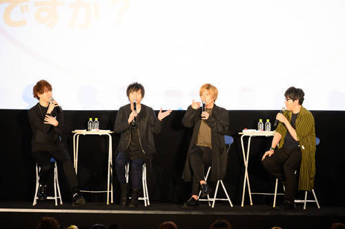 柿原徹也、“フェアリー”高坂知也にびっくり!?アニメ『あんさんぶるスターズ!』先行上映会レポート 画像左から中島ヨシキさん、柿原徹也さん、森久保祥太郎さん、小野友樹さん興奮冷めやらぬなか、ゲストの柿原徹也さん(明星スバル役)、森久保祥太郎さん(遊木 真役)、小野友樹さん(大神晃牙役)、中島ヨシキさん(南雲鉄虎役)がステージに登場し、中島さんの司会進行でトークショーがスタート!最初に紹介されたのは本アニメの監督コメント。この上映会で、監督名はこれまで発表されていた「櫓下純白」から、「菱田正和」に変更されていたことが明らかとなりました。