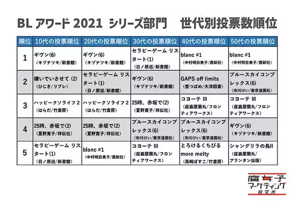 「BLアワード2021が発表!いま最も人気の作品はこれ。世代別の傾向を分析すると…」の画像