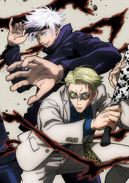 こちらのビジュアルは、本作のキャラクターデザイン・平松禎史描き下ろしとなり、アイマスクをずらし両目を露わにした特級呪術師・五条 悟(CV.中村悠一さん)と、武器を持ち戦闘態勢となる脱サラ1級呪術師・七海建人(CV.津田健次郎さん)が描かれ、Vol.1とVol.2に続き、呪いを廻る呪術師の壮絶な戦いを予感する大迫力なビジュアルとなっております。
