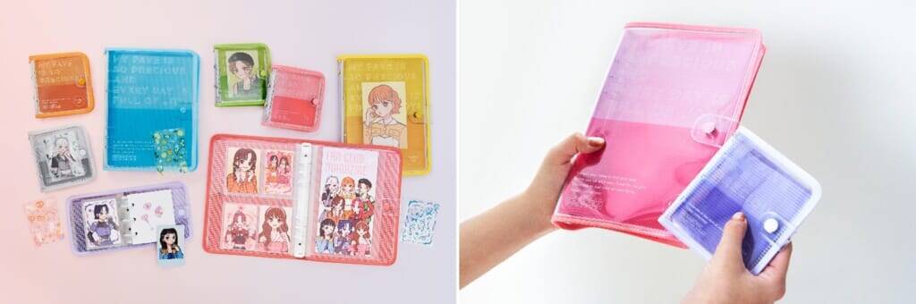 今回発売される「コレクションバインダー」は、推しの写真や会報誌の保管にぴったりのアイテム。ミニサイズとレギュラーサイズの2サイズで、推しのメンバーカラーやイメージカラーに合わせて選べるよう、8色がラインナップしています。