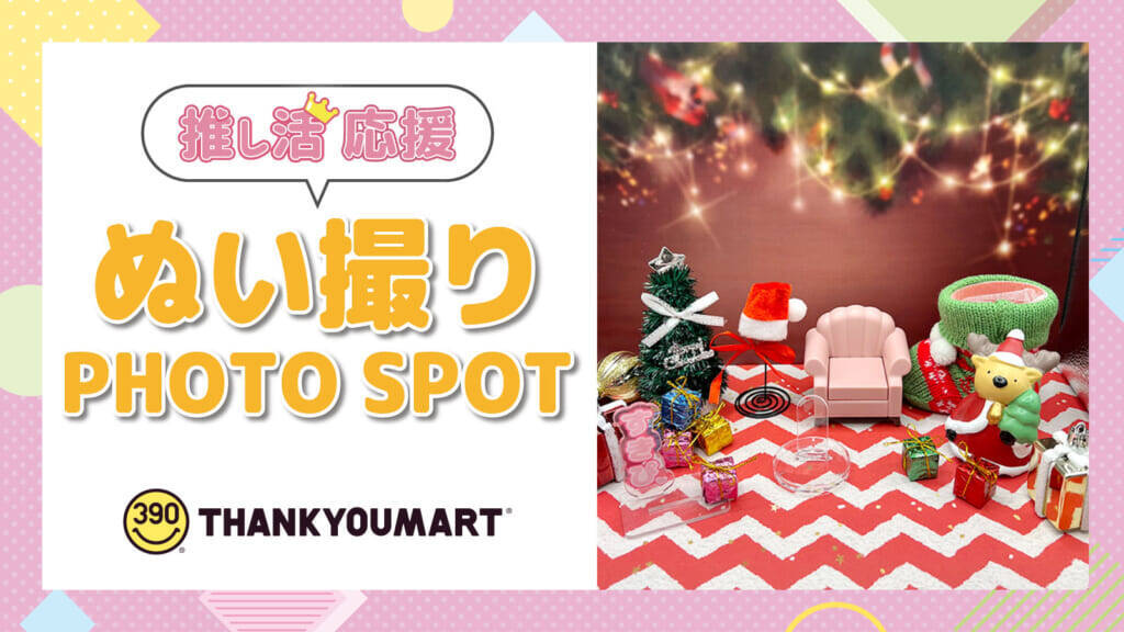 本フォトスポットにて撮影した写真を「#サンキューマートで推し活」を付けて投稿すると、抽選で新作推し活グッズ6点セットが手に入る。ぜひ推しのぬいとともに撮影して、コンテストに応募してほしい。