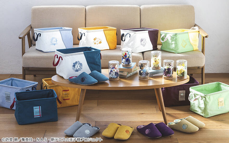 「収納ボックスセット」、「ルームシューズ」には、青学(せいがく)、氷帝、立海、比嘉、四天宝寺をラインナップ。