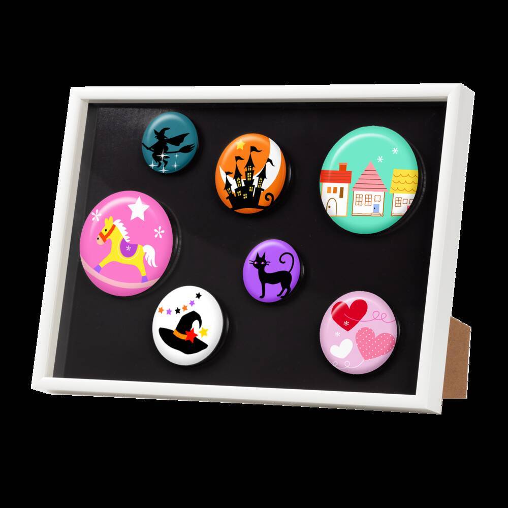 マグネット板入りなので、缶バッチを刺さずに飾れる!好きな位置にレイアウト可能。