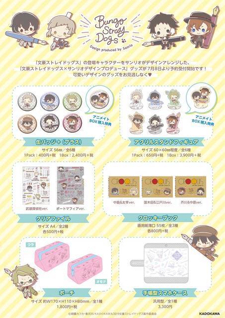 『文豪ストレイドッグス』のキャラクターをサンリオがデザインした「文豪ストレイドッグス×サンリオデザインプロデュース」のビジュアルが初解禁! そのキュートなアレンジを使用したグッズも展開中です!