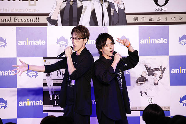 6月18日、「infinit0アルバム制作記念イベント」と題し、ミニライブ&お渡し会がアニメイト池袋本店で行われました。出演は数寄川零役の田所陽向さん、御風呂庵役の千葉瑞己さんのお2人。イベントは「0×0=∞ -インフィニート-」でスタート! イントロが流れた瞬間、客席からは大きな歓声が起こっていました! ステージへ登場した田所さんと千葉さんは、さっそく拳を振り上げて客席を盛り上げます。歌詞の「隣に強い奴がいて」で千葉さんが田所さんを、「負けられない友とそばで」で田所さんが千葉さんを見たり、「背中合わせの2人なら」で田所さんと千葉さんが実際に背中合わせになったりと、これが初ステージとは思えない2人のパフォーマンスがいくつも続きました。