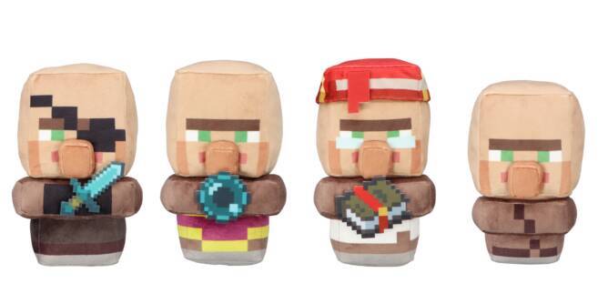 デフォルメされた武器鍛冶、司祭、司書、こどものぬいぐるみ「村人デフォルメぬいぐるみ」。職業をモチーフにしたアイテムを持っている。全4種、全長約18cm。
