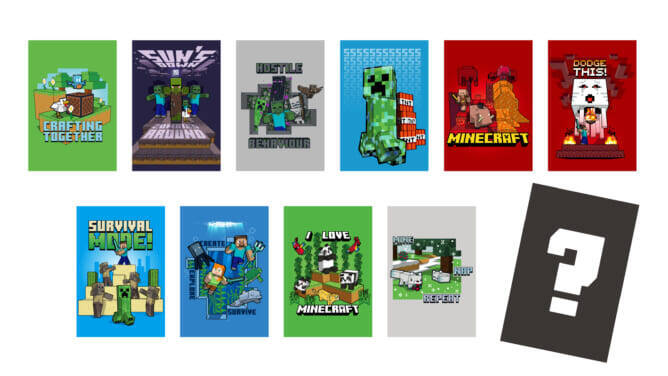 また『マインクラフト』の対象景品が展開された株式会社イオンファンタジーのアミューズメント施設のプライズゲームのブースに500円投入する毎に、限定ポストカード1枚をランダムでプレゼントする。