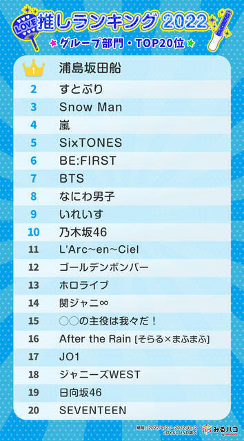 ■「推しランキング2022」 いま、推されているアーティスト・キャラクターランキング
