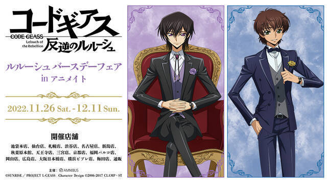 『コードギアス 反逆のルルーシュ』ルルーシュ バースデーフェア in アニメイト」開催!