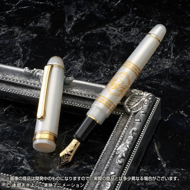 本商品は、アニメ「デジモンアドベンチャー」の“オメガモン”をモチーフにし、筆記具メーカー「プラチナ万年筆」とコラボした特別仕様の万年筆です。創業から約一世紀の歴史を持ち長年培われたプラチナ万年筆の高い技術が注ぎ込まれています。