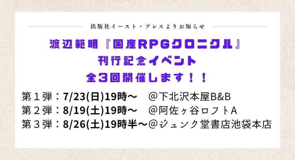 『国産RPGクロニクル』刊行記念イベント全3回開催します