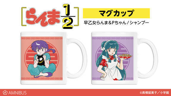 早乙女らんま&Pちゃんとシャンプー、それぞれの名前と中華風のモチーフを組み合わせ、キャラクターからイメージしたカラーリングで仕上げました。少し大きめのマグカップで、飲み物をたっぷりと入れることができます。