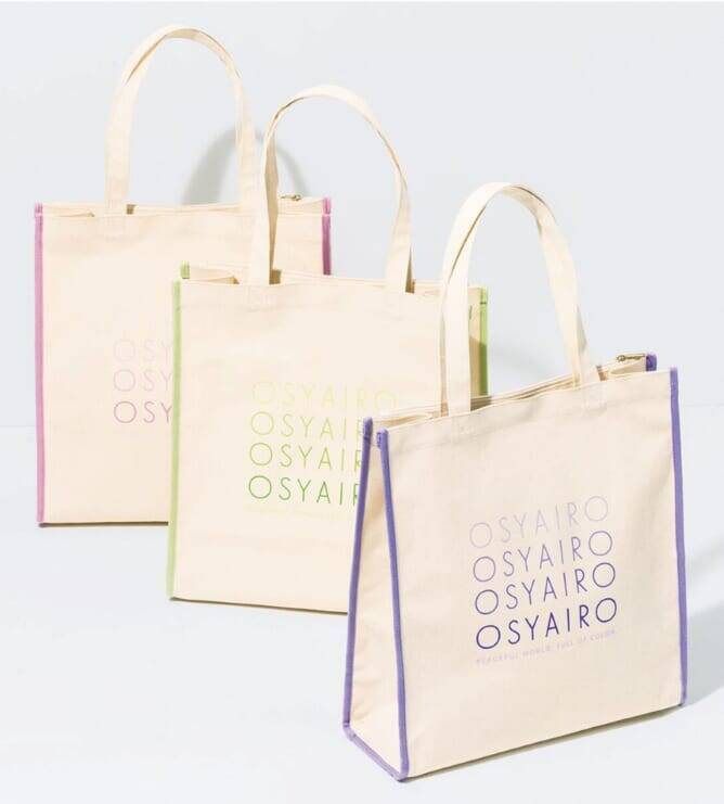 推し色を楽しむブランド「OSYAIRO[おしゃいろ]」より、アイドルのコンサートなどで使用する応援うちわ用のシークレットポケットが付いたトートバッグが発売されました。普段使いでもライブでも便利な仕様で、生成りのキャンバス地にグラデーションのロゴプリントとパイピングが映えるデザインとなっています。