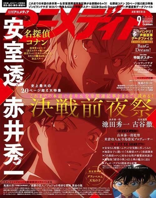 アニメディアは1981年創刊のアニメ総合情報誌であり、本年7月号を持って、創刊38周年を迎えました。創刊38周年のなかで発売前に重版を決定したのはアニメディア史上初めてです。アニメディア9月号では、若いアニメファンを中心に幅広い世代から注目を集めているアニメ『名探偵コナン』を表紙&巻頭特集で取り上げています。本特集では8月31日(土)夜6時より放送される『名探偵コナン』の超重要エピソード「迷宮カクテル編」(全3話)の見どころを、同編に出演する人気キャラクター・赤井秀一役の池田秀一さん、安室透役の古谷徹さんのコメントとあわせて徹底紹介。