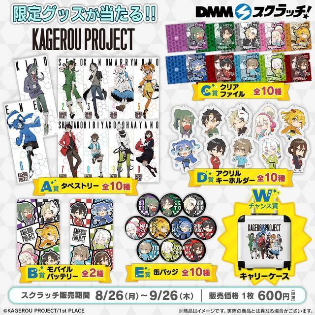 ハズレなしのオンラインくじサービス『DMMスクラッチ』にて、2019年8月26日より「カゲロウプロジェクト スクラッチ」が1回600円(税抜)にて販売開始されました。「カゲロウプロジェクト」スクラッチ概要