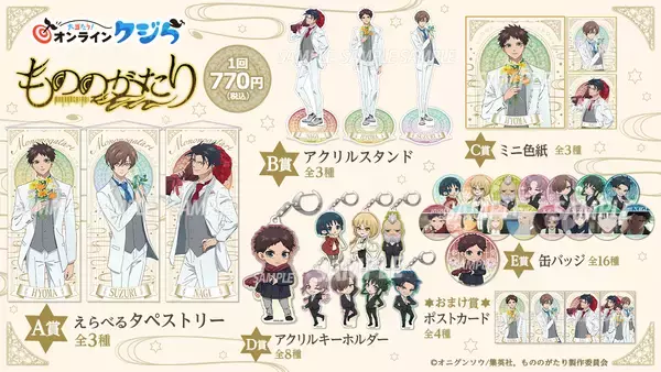「『もののがたり』オンラインくじ発売!兵馬・薙・硯が、描き下ろしの"白スーツ姿"で登場!タペストリー、アクスタ、ミニ色紙など」の画像5 「『もののがたり』オンラインくじ発売!兵馬・薙・硯が、描き下ろしの"白スーツ姿"で登場!タペストリー、アクスタ、ミニ色紙など」の画像6 「『もののがたり』オンラインくじ発売!兵馬・薙・硯が、描き下ろしの"白スーツ姿"で登場!タペストリー、アクスタ、ミニ色紙など」の画像7 「『もののがたり』オンラインくじ発売!兵馬・薙・硯が、描き下ろしの"白スーツ姿"で登場!タペストリー、アクスタ、ミニ色紙など」の画像8