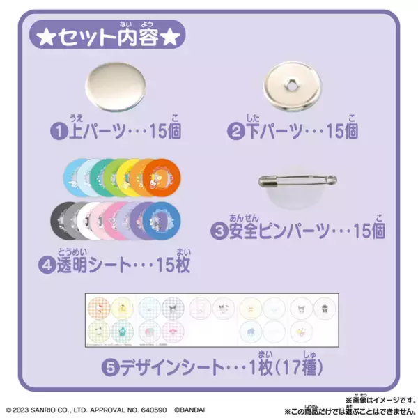 「「サンリオ」の推し活缶バッチを作れる素材セットの予約受付が開始!シナモロールやクロミなど人気キャラのデザインと推しカラー、推しの写真で自分だけの缶バッジを製作可能」の画像