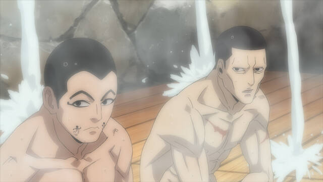 第七師団御用達の登別温泉を訪れた宇佐美と二階堂は、そこで療養生活を送っていた菊田特務曹長と有古一等卒に接触する。同地には情報収集のために按摩に扮した都丹とその仲間たちが出入りしており、菊田と有古は雪山を行き来する不審者の存在から彼らの正体に迫りつつあった。そのことを知った都丹は、自分たちのほうから打って出ることを決断。不審者の捜索に出掛けた菊田と有古を待ち伏せ、夜の暗闇に紛れて襲撃を掛けるッ!