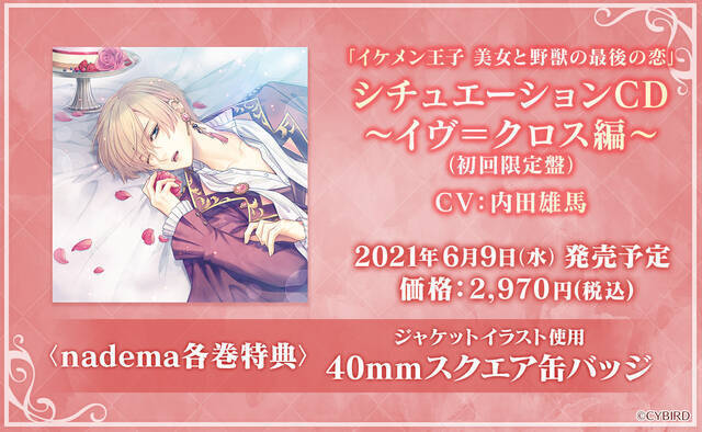 女性向け恋愛ゲーム「イケメンシリーズ」の人気タイトル『イケメン王子 美女と野獣の最後の恋』より、シチュエーションCD『イヴ=クロス』編が発売決定。内田雄馬さんのインタビューをお届けします。