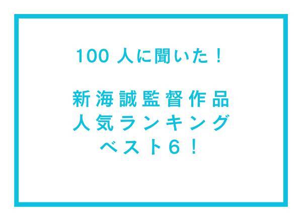 今回、そんな新海誠監督作品について10~50代の男女100人にアンケート調査が行われ、新海誠監督の好きなアニメーション作品ランキングが公開された。