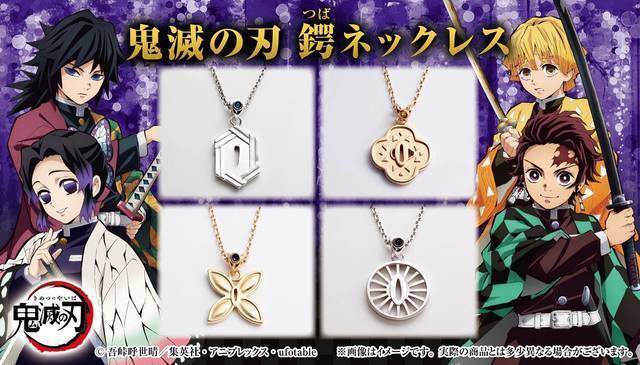 本商品は、陽光以外で人喰いの鬼を倒すことができる武器「日輪刀」の剣士によって異なる鍔の形状をモチーフにした、本格的なシルバーネックレスです。主人公の竈門炭治郎・我妻善逸と、鬼殺隊の中でも最も位の高い剣士である柱の冨岡義勇・胡蝶しのぶの日輪刀の鍔をイメージした4種類を展開。