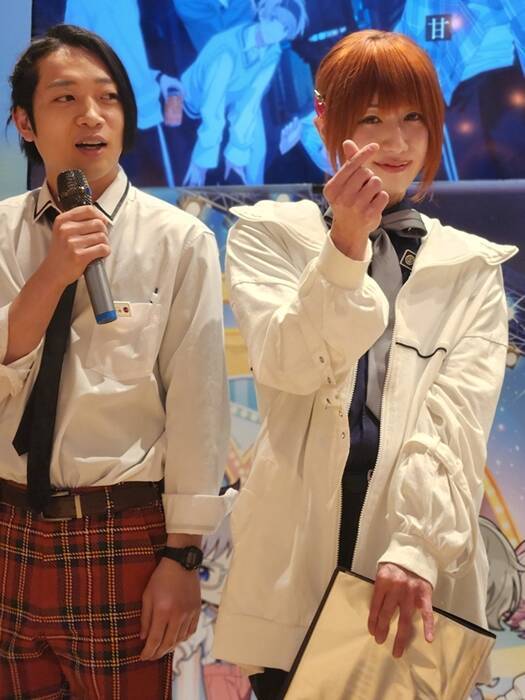 『アオペラ -aoppella!?- 』広報部員の皆さんによるゲームイベント体験会では、都立音和高校 広報部員の雪川大稀さん・小熊久太郎役さん・夜沢蛍さんが、私立奏ヶ坂中学高等学校 広報部員の東雲林檎さん・黒川紫乃さん・笹良佐助さんが登場。