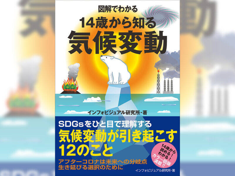 『図解でわかる 14歳から知る気候変動』(インフォビジュアル研究所・著)は全国書店・通販サイトや電子書店で発売中です。図版が多くわかりやすいと好評の書籍シリーズ「図解でわかる~」は、日本の宗教、ごみ問題、水資源、気候変動などのSDGsに関する課題や、地政学、資本主義、民主主義、心のケア、LGBTQ+などなど、今だから学び直しておきたいワンテーマを1冊に凝縮して3~4カ月毎に刊行されています。
