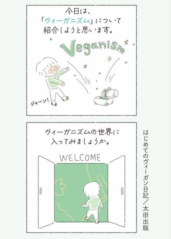 本書は、韓国で暮らす主人公のアメリが、どのように「ヴィーガン」に興味を持って、菜食ライフを送っているかを描いたコミックエッセイ。