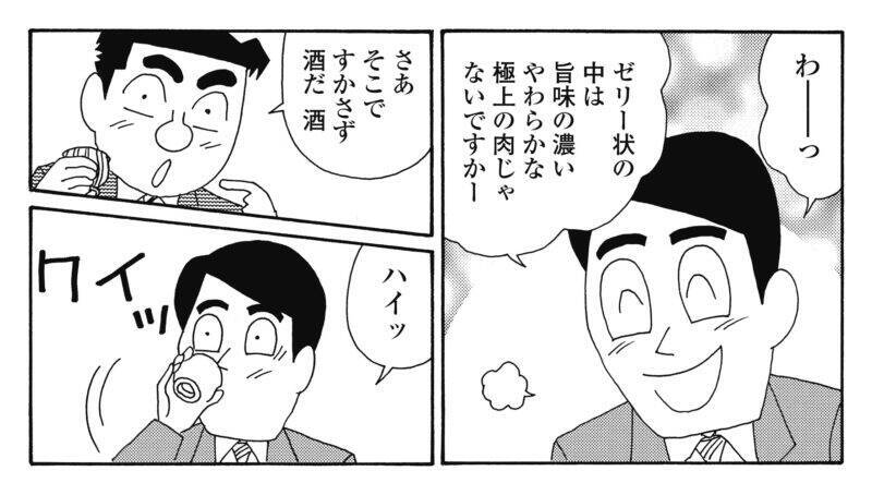 ところが3軒目、またまたお新香を頼んでこのセリフ。後輩からしてみたら混乱する場面だが、どんなつまみにも適材適所な価値があることを教えてくれる、結局は頼もしい先輩なのだった。ただ、「つまみになればなんでもいいだけ」という見かたもできなくはない。