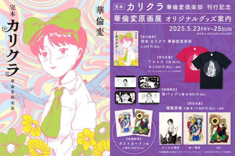 『完本 カリクラ 華倫変倶楽部』の刊行を記念し、東京・代官山のUPSTAIRS GALLERYにて「華倫変原画展」を開催。『カリクラ』の直筆原稿のほか、貴重なネームや、ラフイラストも展示される。さらに、今回発見されたカラー原画など、2023年に行われた「華倫変 没後20年追悼原画展」(大阪・モモモグラ開催)では展示されなかった原画も初公開!