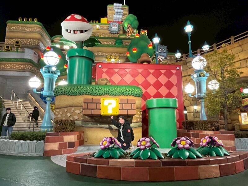 土管を模したトンネルをくぐっていくと、スーパーマリオシリーズの世界観がカラフルに再現されたエリアが目の前に広がり、「すげー!」と声が出る。テレビでちらっと見たことはあったが、なるほど、USJに行く人はみんな、こんなすごいものを見ていたのか。
