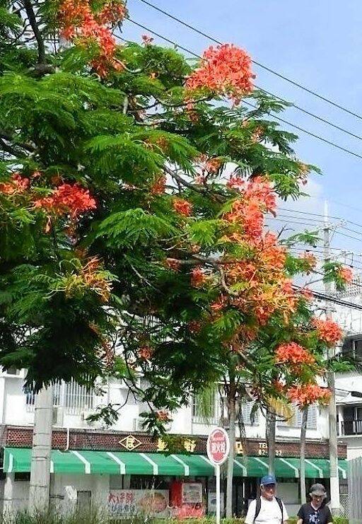 歩道沿いに植栽されている高さ約5メートル、幹は直径60センチほどの木。