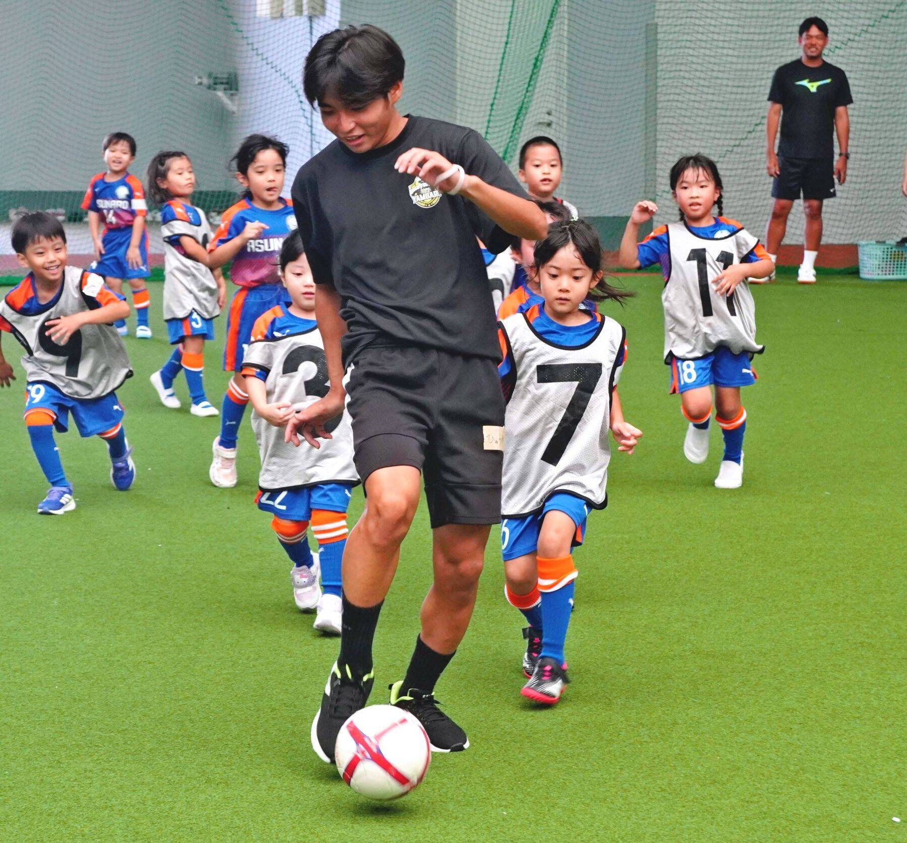 社会福祉法人城山ネットワーク会議が運営するあすなろ認定こども園など市内の3園が参加した。同部は休日の試合などで同法人からバスを借りることがあり、そのお礼としてサッカー教室を開いた。