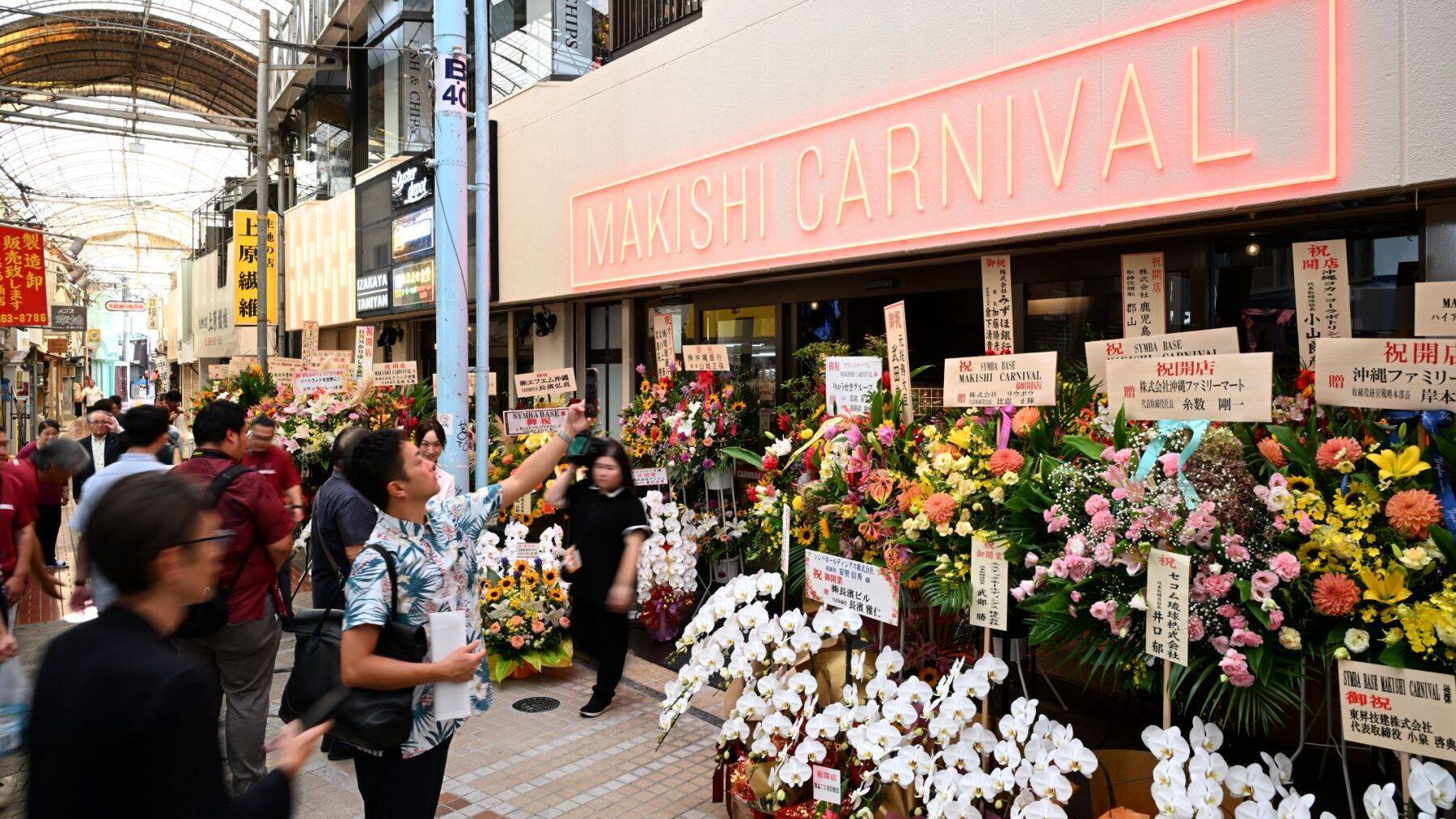 開業式典で安里社長は「ここに来ることを目的に、県民や観光客が足を運んでくれる施設を目指す」と意欲を示した。玉城デニー知事や沖縄観光コンベンションビューローの浜田京介会長が祝辞を述べ、沖縄観光や地域経済への波及効果に期待を寄せた。 (社会部・又吉嘉例)旧牧志公設市場衣料・雑貨部跡に開店した複合商業施設「SYMBA BASE(シンバベース)」=16日、那覇市牧志(小宮健撮影)">