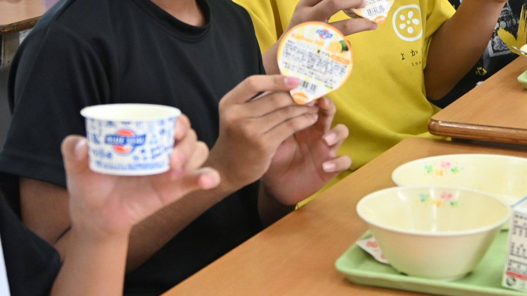 伊豆味小学校の給食時間には「爽やかな香りのカーブチーが今日はみんなの大好きなアイスになって登場」と校内放送が流れ、一人一人に配られた。