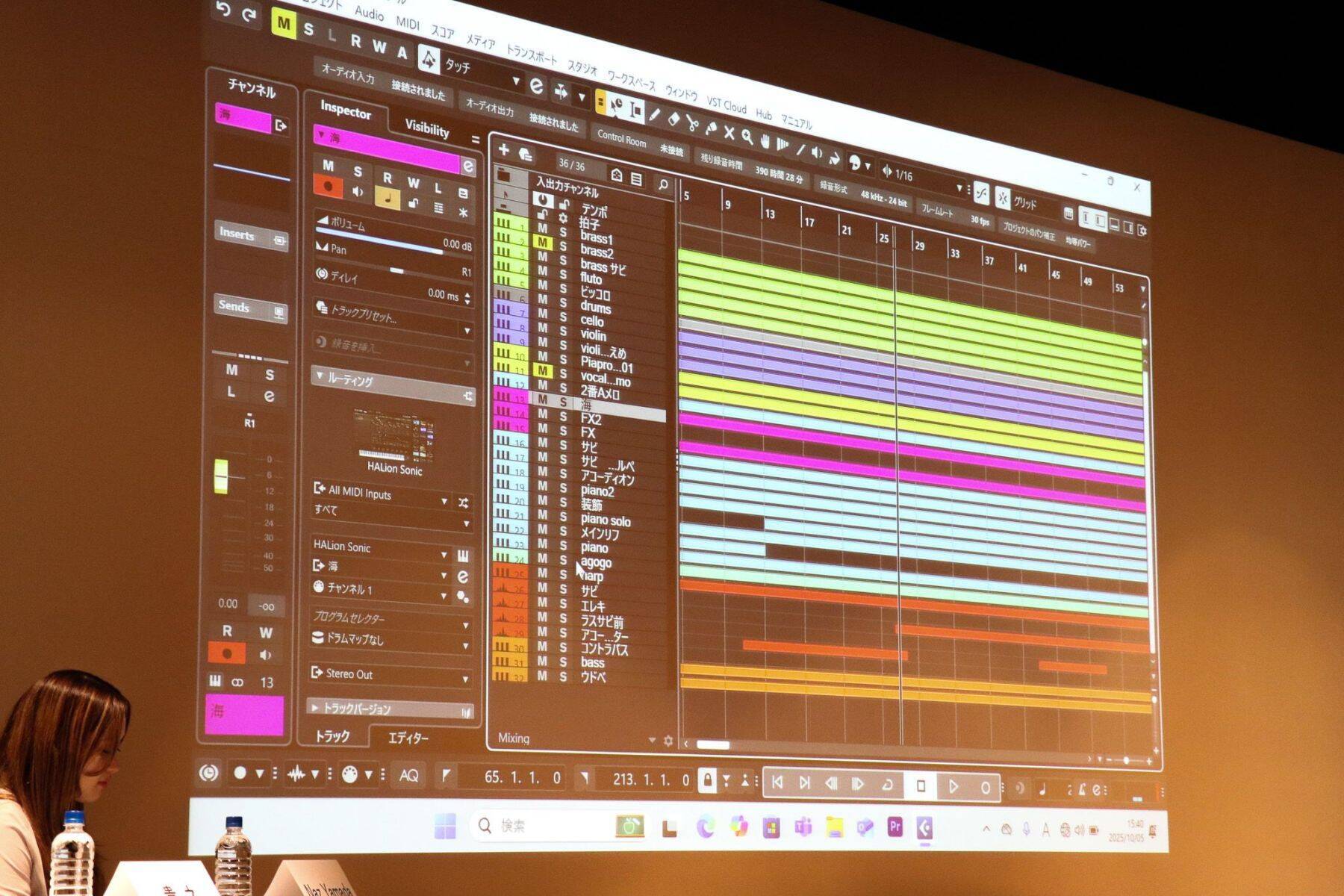 グランプリを受賞した米須悠真さん(昭和薬科大学附属高校1年)の楽曲制作画面=10月5日、那覇市の沖縄県立博物館・美術館講堂">
