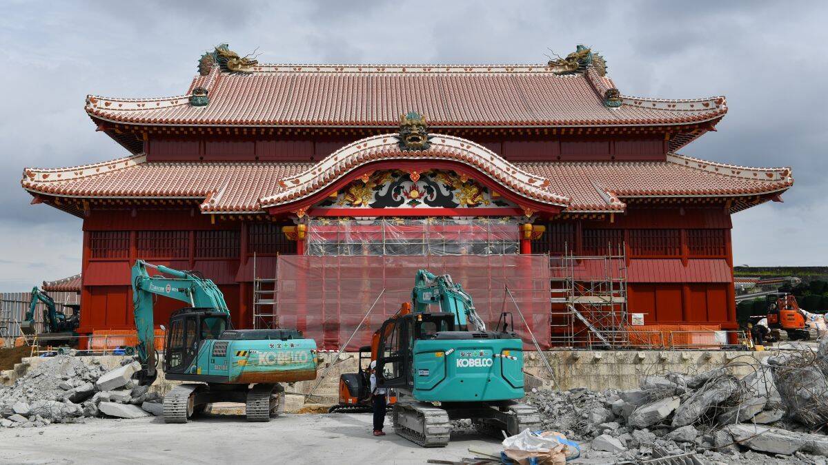 素屋根が外され、姿を現した首里城正殿=10月27日、那覇市(田嶋正雄撮影)">
