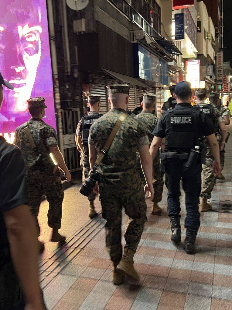 那覇市では午前0時半ごろから松山の繁華街を巡回する米兵の姿が見られた。米軍関係者によると、この日は40~50人が参加し、3グループに分かれて松山や国際通りを巡回。米兵と思われる人物のIDカードを確認し、帰宅を促していた。