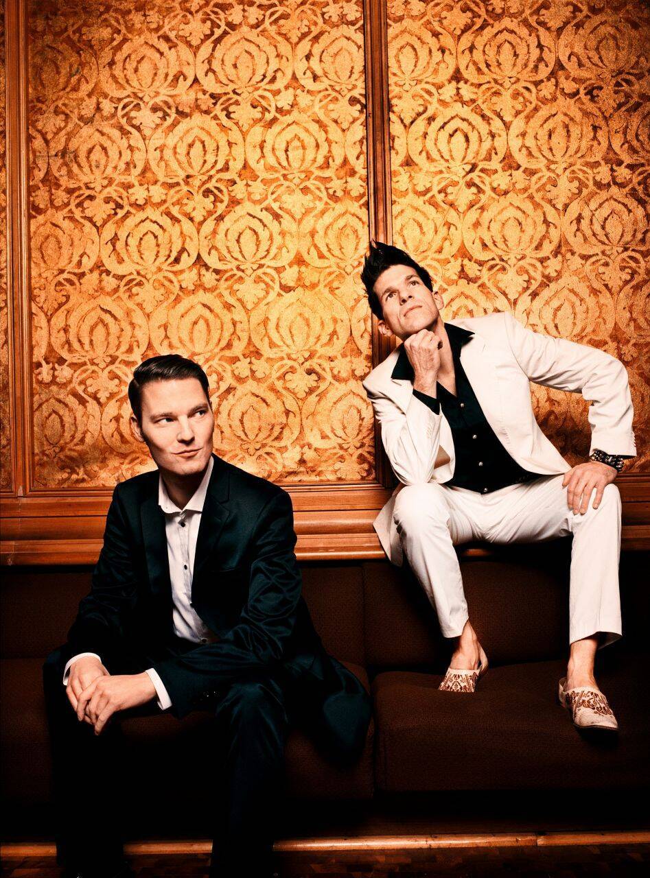 それぞれ黒と白のスーツに身を包んだ2人のピアニスト、ポール・シビスさんとアンドレアス・カーンさんによる演奏対決の勝敗を観客が決める参加型コンサート。