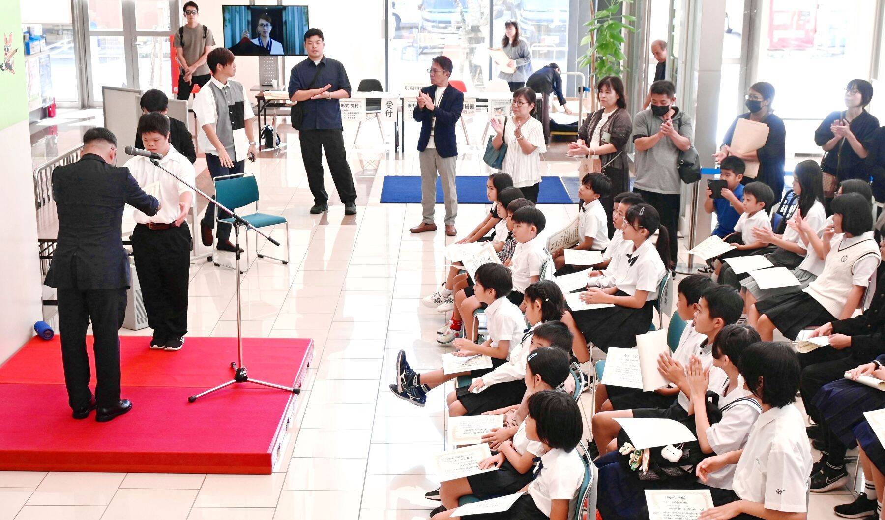 表彰式では、沖縄タイムス社の与那原良彦文化事業本部長が「それぞれの才能を発揮し、沖展などのコンクールにも挑戦してほしい。今後の活躍を期待している」と激励。一人一人に表彰状を手渡した。