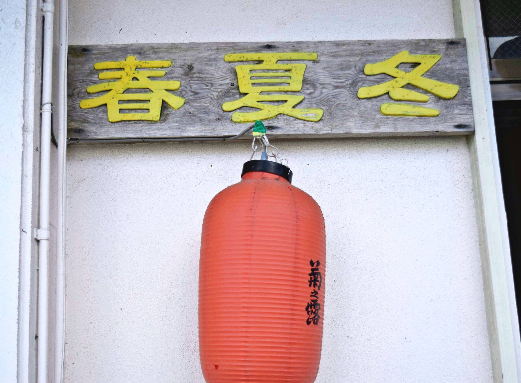 宜野湾市普天間1区にある、そば屋兼小料理屋には「春夏冬」の看板。