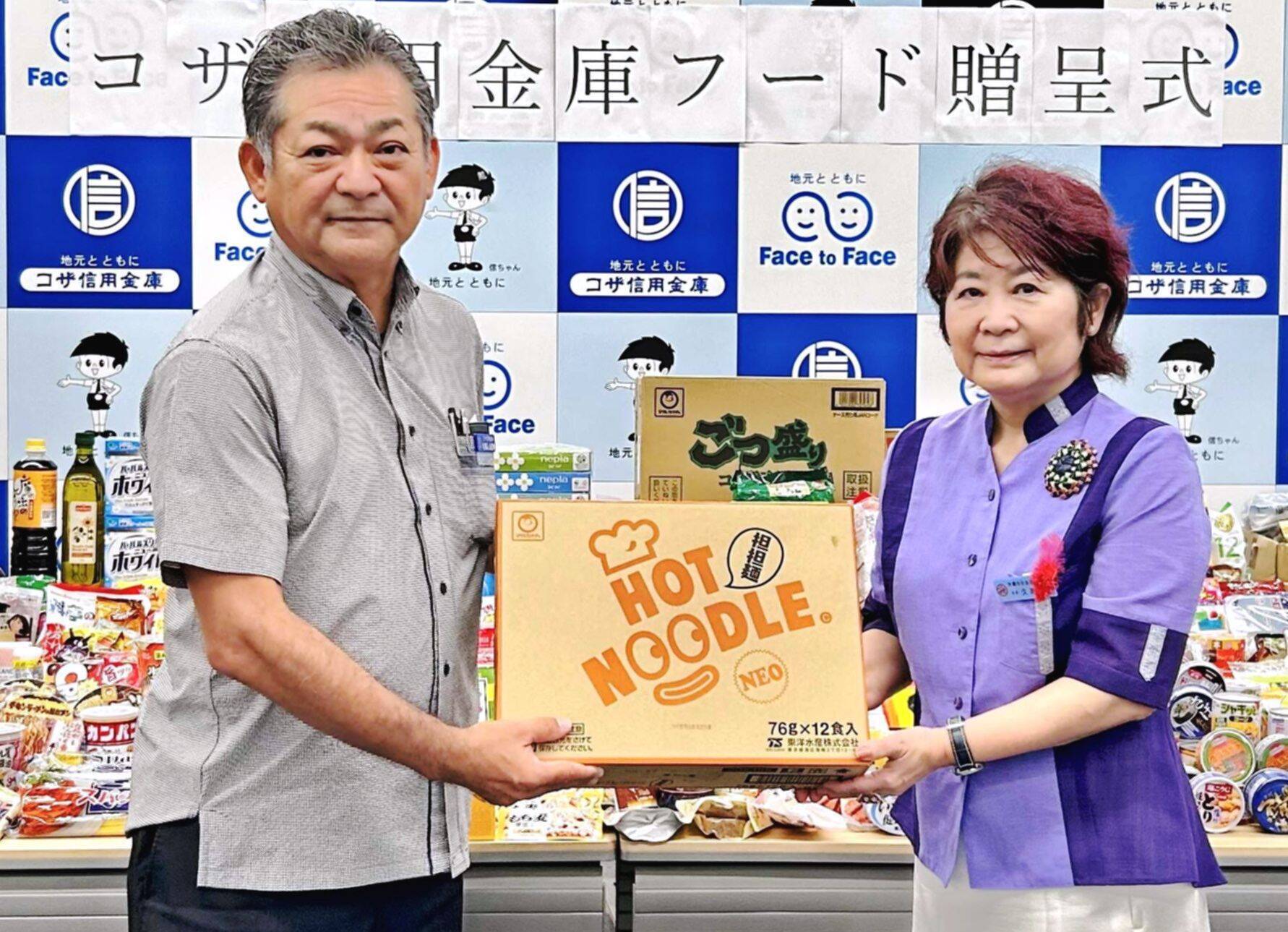 コザ信金の名嘉山盛勝常務理事は「最近の物価高がより家計を圧迫している。一人でも多くの人へ届いてほしい。食料品や日用品は全職員の志によるもの。これからも継続していきたい」と言葉に力を込めた。