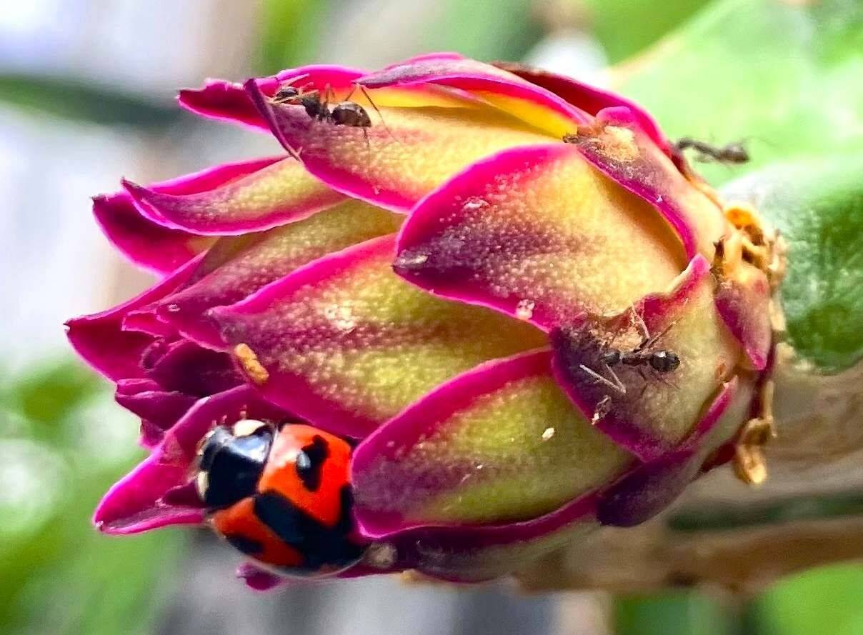 ドラゴンフルーツのつぼみの先は「風通し抜群」の会議室。