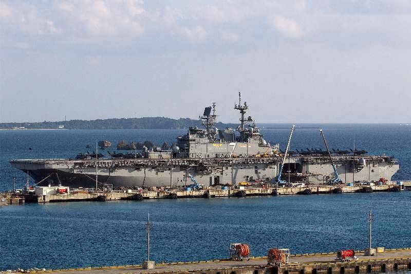 米軍ホワイトビーチに寄港した強襲揚陸艦トリポリ=30日、うるま市勝連">