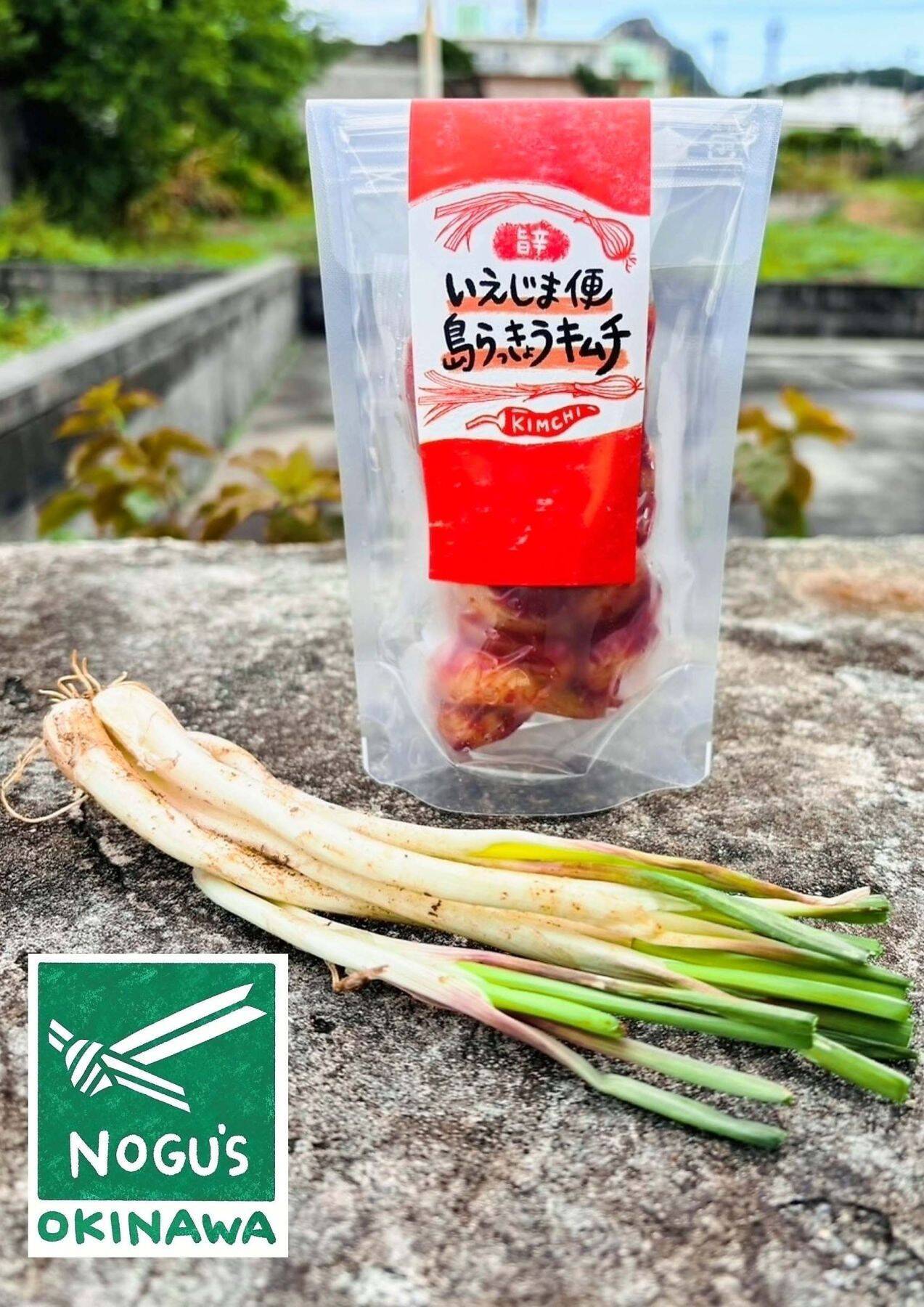 NOGU’s(ノグズ)の野口渚さんと義母の美恵子さんが作る「いえじま便 島らっきょうキムチ(1080円)」は、伊江島らっきょうの独特のシャキシャキ感が魅力で、キムチの程よい辛みと隠し味のリンゴとパイナップルのフルーティーさを感じる逸品です。
