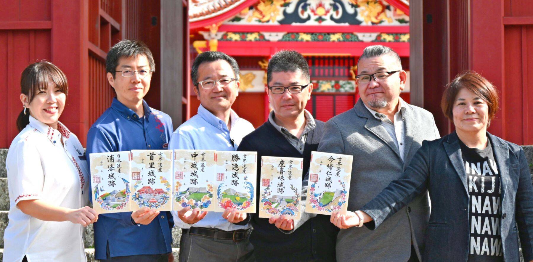 浦添市観光協会の新城歩さんは「浦添城跡は都が首里に移る前の居城で、琉球王国の基盤ともいわれる。加われてうれしい」と話した。沖縄美ら島財団の木下龍太さんは「6種類そろえるとつながるデザインになっている。県内のグスクを巡り、沖縄の歴史に興味を持ってほしい」と語った。